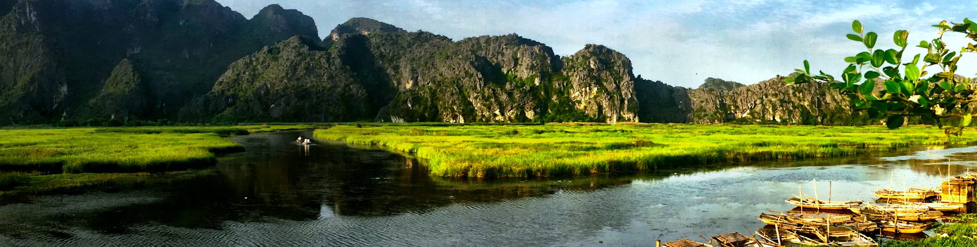 AM: after breakfast, we drive about 2 hours to the south of Hanoi to Ninh Binh province. It will be an exciting day highlighted firstly by 2 hours local boat ride in Tam Coc streams that we will enjoy the spectacular scenery while gliding along the river among rice paddies and ranges of Limestone Mountains peaking up towers over you.