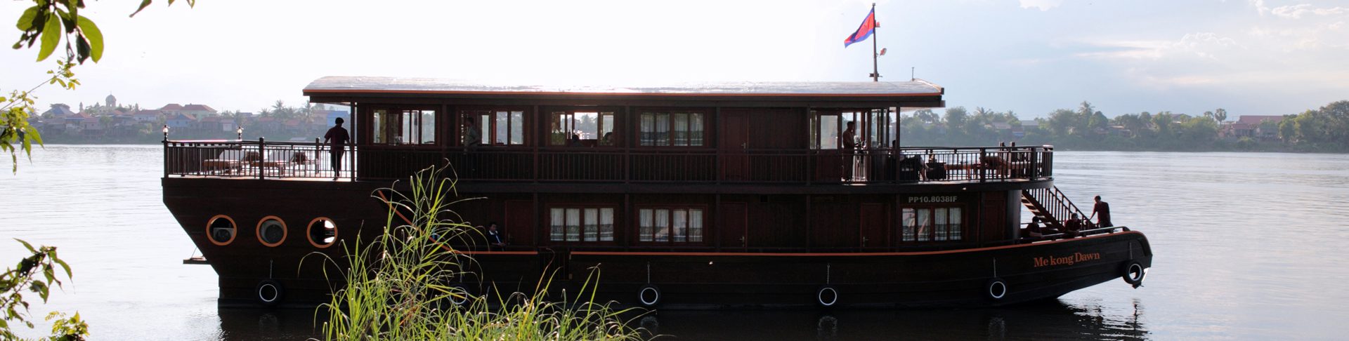 Your cruise begins when we meet you at the DOT Grill restaurant in Phnom Penh’s central riverside area at 9 am, from where we’ll transfer you to our private dock and onto the Mekong Dawn boat.