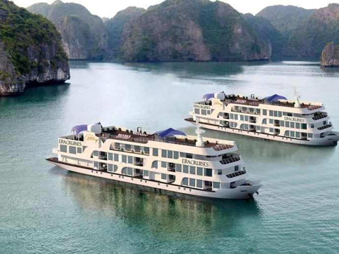 12:00 – 12:30: Guests will be picked up from Tuan Chau International port and deliver to Era Cruises on tenders. After boarding, Cruise Manager will give a brief about safety regulations and tours. Travellers then will be given room key and time for freshening before lunch.
