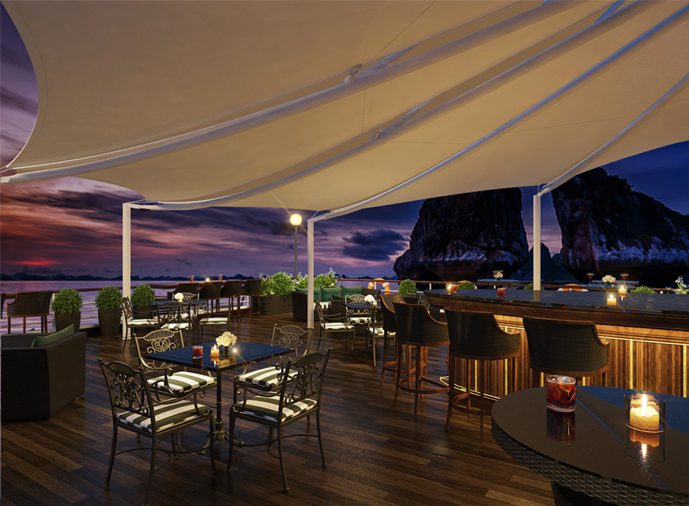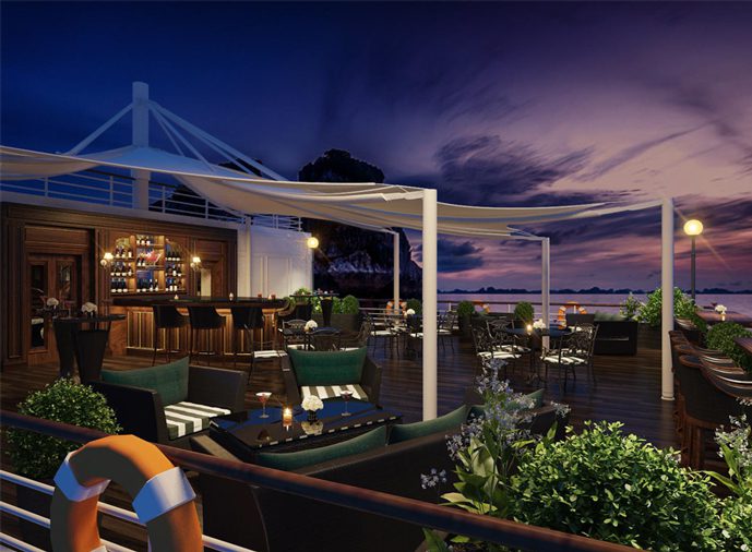 17:30 – 18:30: Talent Chef will present you how a famous Vietnamese spring roll is made. You can try to make one or more for your own or partners. In the meantime Happy hour will offer you drink with attractive price. Happy together, watching the Sun falling in to sea will be unforgettable memories to every single traveller on board.