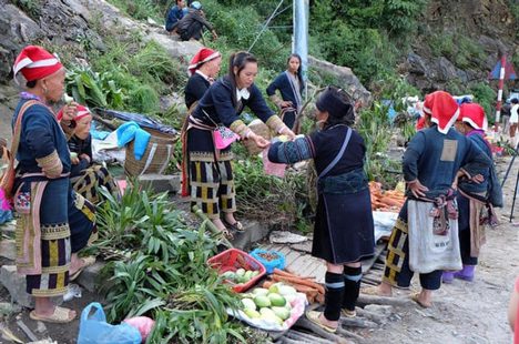 Mixture of ups and downs throughout the day, challenging climbs, exceptional views of the Thang Sin Mountains, distant H’Mong villages; trek to Can Cau Village (Cau Cau Market open on Saturday); climbing up from Can Cau for about 8km through remote villages; spectacular terrain to Thai Giang Pho Village, lunch in the shade; downhill to Bac Ha hotel stay.