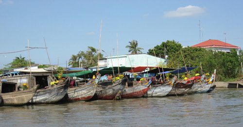 Cycling (Ship ‘The Jahan’ only, extra cost): This cycling tour offers a ride over the scenic Tan Phong Island. Cycle along well-maintained and flat concrete paths winding through orchards of rambutan, longan, and jackfruit. We stop and visit a local family business producing charming handicrafts from water hyacinths. The tour continues for 3 km along a canal to a local temple for a refreshing break under a banyan tree before continuing the ride to a tropical fruit farmer’s home for a tasting.