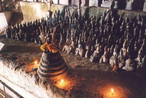Nearby Luang Prabang, Pak Ou caves is a complex system of two caves, which are lower cave (Tham Ting) and upper cave (Tham Theung). The whole complexity consists of more than 6000 ancient Buddha statues with different sizes and shapes. This cave is where nearby villagers and pilgrims from all over the world bring or send damaged and old Buddha statue for retirement instead of tossing them.