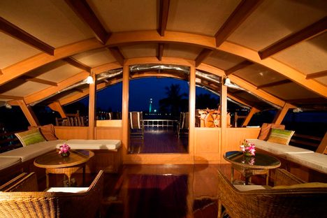 At sunset, the MEKHALA will dock at Wat Kai Tia, a Buddhist temple located in a tranquil rural village. An exquisite candlelit dinner of mouth-watering Thai cuisine will be served on the deck.
