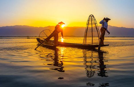 We will visit the fascinating village of Indein, with it’s complex of ancient shrines and stupas and walk though exotic colonnades of stairways and shop stalls. We’ll visit the “long neck” tribal women, and weaving and craft villages perched on stilts. See the lake’s unique “leg rowers” – the Intha people row standing up with one leg wrapped around an oar. It is a feast for the senses and a photographer’s dream.