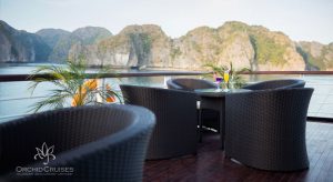 11:00 – 11:45: Disembark Orchid Cruises at Tuan Chau Marina, say best wishes, and end your cruise with us. On the way back to Hanoi the drive might stop for 15-20 mins for the guests can go to toilet or get some food.