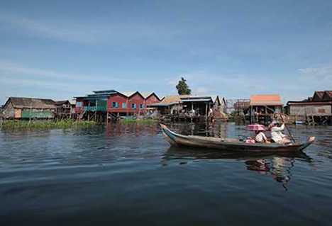 Sail to Chnok Tru, the last big village before the river meets the Great Lake of Tonle Sap.