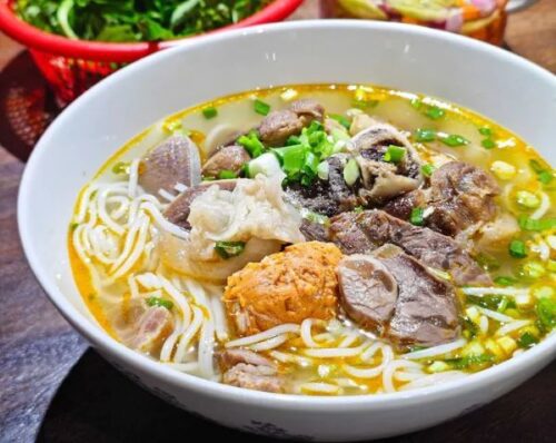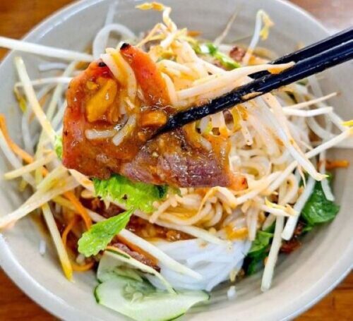 For the adventurous eater, bun mam is a must-try. At Bun Mam Ba Dong, you’ll experience the bold flavors of this noodle dish, which features fermented fish sauce as its base. The dish is hearty, with generous portions of pork, shrimp, and fresh vegetables. The pungent aroma might be intimidating at first, but one bite will have you hooked. It’s a dish that truly embodies the bold, authentic flavors of Da Nang.