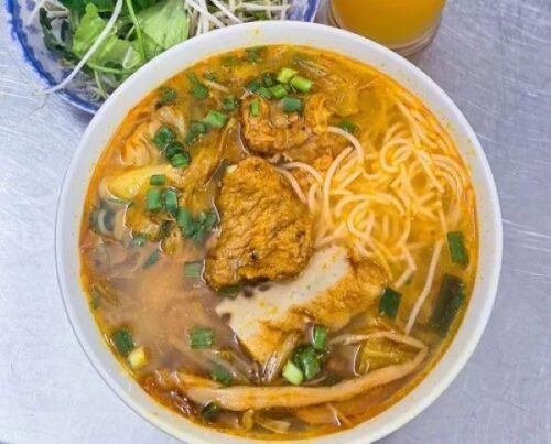 Fish cake noodle soup, or bun cha ca, is a staple in Da Nang, and Bun Cha Ca Hon takes it to the next level. This humble eatery serves up a bowl that is both comforting and flavorful. The tomato-based broth is light yet aromatic, enhanced by a medley of fresh herbs and vegetables. The star of the dish is the fish cake—perfectly seasoned and bursting with flavor. At just a few dollars per bowl, it’s an affordable yet delicious way to start your day in Da Nang.