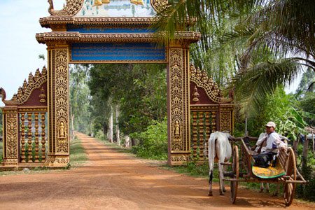 Explorations up Tonle River to a silver making village, Kampong Trolach, and Chong Koh either by ship or by coach depending on water levels. This river is very pretty and there is a vibrant local life to be viewed along the river banks and in lesser craft.