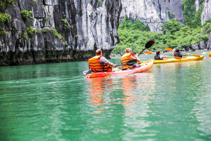 08:00 – 09:00: Join a guided to explore hidden parts of the bay, Luon cave. You share a sampan with other tourists with a local rower or taking a kayak on your own.