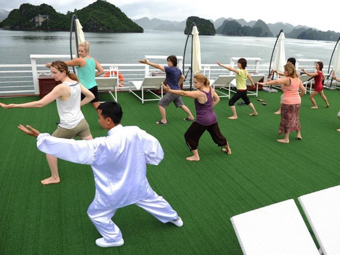 06:30: Welcome a new day with amazing dawn on the Legendary Gulf of Tonkin. Refresh your body & soul by a Tai-chi lesson on sundeck.