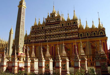 After breakfast, visit Thanboddhay Pagoda which is built to remind of Mt. Meru and has some similar characteristics to Borobudur (Java, Indonesia). It is said to house 582,357 small Buddha images. You will be amazed by Boditahtaung Pagoda, 90m long reclining Buddha image and the highest standing Buddha image (129m) in the world. Then proceed to Mandalay. On the way, visit Soon U Ponenyashin Stupa and Kaung Mu Daw Pagoda.