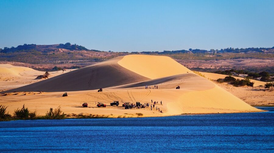 After breakfast, embark on a 5-6 hour scenic drive along Vietnam’s desert-like coast to Mui Ne. Stop for photos and coffee breaks amidst white sand dunes and blue seas.